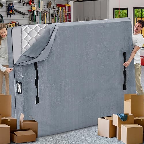 Mattress Bags for Moving and Storage, BETU Twin Mattress Protector Waterproof Mattress Cover with 8 Heavy Duty Handles and Zipper Extra Thick Moving Supplies for Dorm Bed Reusable (77x42x13.5 Grey)