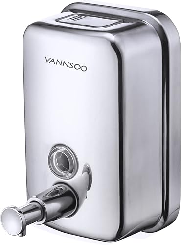 Commercial Soap Dispenser Wall Mount Stainless Steel Manual Liquid Pump Rust-Proof Leak Free for Bathroom (17 fl oz / 500ml)