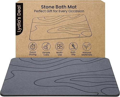 Lydia's Deal Stone Bath Mat - Diatomaceous Earth Shower Mat, Non-Slip Super Absorbent Quick Drying Diatomite Stone Bath Mats for Bathroom Floor Mat, Natural, Easy to Clean 23.6” * 15.4“ Gray