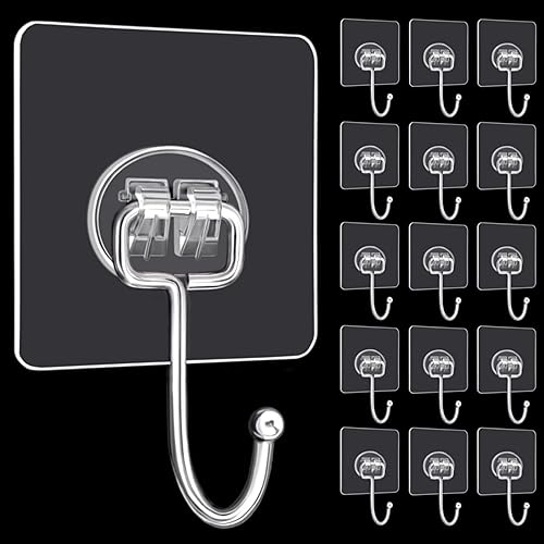 DKHDBD Large Adhesive Hooks, 16-Pack Hold 33lb(Max) Heavy Duty Sticky Hooks, Waterproof Transparent Hooks for Hanging, Self-Adhesive Traceless Clear Wall Hooks to Use for Keys Robe & Towel