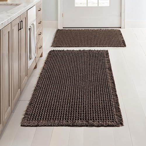 MIULEE Set of 2 Waffle Bathroom Rugs, Boho Bath Rugs Non Slip Washable, Super Absorbent Bath Mats, Ultra Soft Rubber Backed Shower Mats for Bathroom Floor, Tub and Shower, Brown, 18x30 Inch