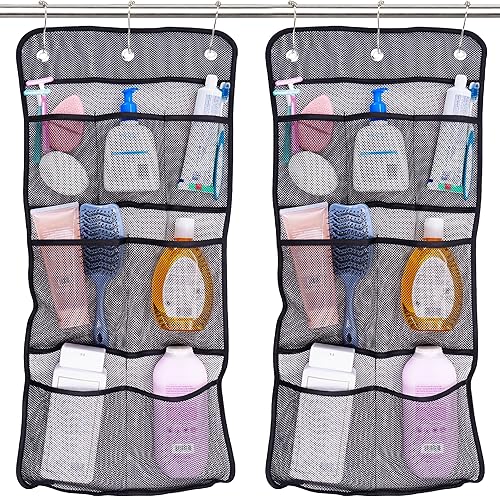 S&T INC. Shower Organizer, Shower Caddy or Bathroom Organizer with Quick Drying Mesh, 7 Pockets to Hold Shampoo, Soap, Loofah, and Cruise Ship Essentials, 14 Inch by 30 Inch, White, 2 Pack