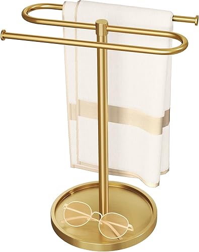 Towel Holder Stand, Stainless Steel Hand Towel Holder Rack for Bathroom Countertop, S-Shape Free Standing Towel Bar Holds 2 Towels for Kitchen Countertop, Black