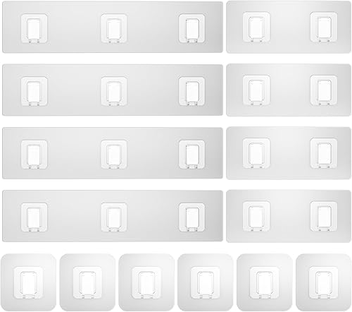 Lsnisni 14 Pack Shower Caddy Adhesive Replacement, Waterproof Shower Shelf Adhesive Strips, Strong Adhesive Flat Hooks for Bathroom Storage Shelves and Kitchen Racks No Drilling, Clear