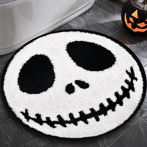 Jack Halloween Rugs Mat 2ft Round Non-Slip Cute Creepy Nightmare Bath Rug Bathroom Shower Floor Mat for Halloween Indoor Decor Nightmare Before Holiday Christmas Decorations
