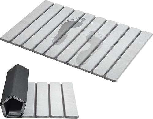 AWW Foldable Stone Bath Mat, Super Absorbent Diatomite, Non-Slip Quick Drying Mat, Compact, Light Grey, 23.6 x 15.5 Inch