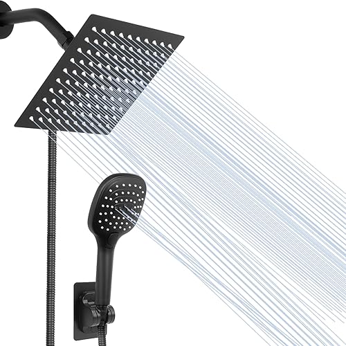NearMoon Shower Head with Hose, High Pressure Stainless Steel Rain Shower and 3 Settings Handheld Spray Combo with Push Button Flow Control (8 Inch Showerhead Set, Chrome Finish)