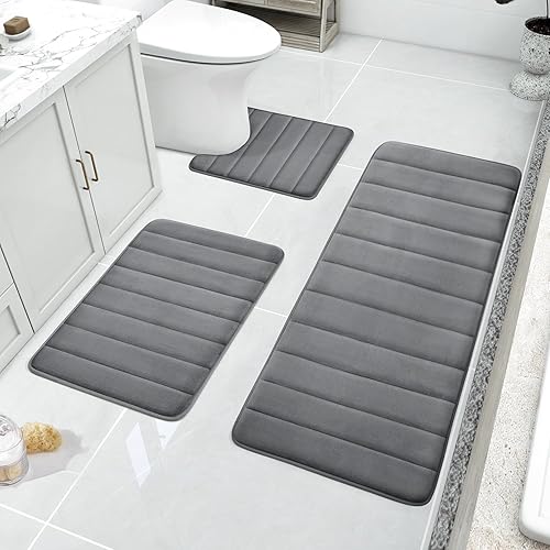 Bathroom Rugs Set 3 Pieces Extra Soft and Absorbent Shaggy Bath Rugs, Chenille Bathroom Mats, Non-Slip Plush Carpet Runner, Bathrooms Set with Toilet Rugs, Perfect Bath Mats for Bath Tub, Shower
