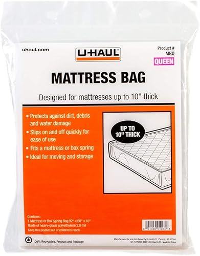 U-Haul Standard Queen Mattress Bag – Moving & Storage Cover for Mattress or Box Spring – 92" x 60" x 10"