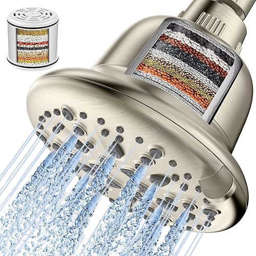 Cobbe Filtered Shower Head, 7 Modes High Pressure Shower Heads - 16 Stage Shower Head Filter for Hard Water for Remove Chlorine and Harmful Substances (Luxury Polished Chrome, 5 Inch Round)
