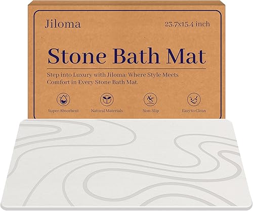 Stone Bath Mat Diatomite Stone Mats for Bathroom Non-Slip Diatomaceous Earth Shower Mat Super Absorbent Bathroom Floor Mat Natural Easy to Clean(24 * 16 Grey)