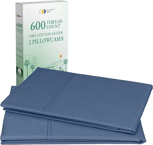 CALIFORNIA DESIGN DEN Luxuriously Soft Hotel Quality 600 Thread Count, 100% Cotton Set of 2 Cases, Crisp & Cool White Standard Pillow Cases Fits Standard & Queen Pillows (Bright White)