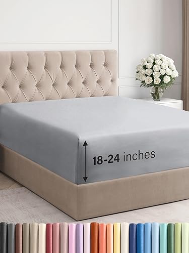 Extra Deep Queen Fitted Sheet - Hotel Luxury Single Fitted Sheet Only - Easily Fits 18 inch to 24 inch Mattress - Ultra Soft, Wrinkle Free w/Extra Deep Pockets - Easy-Care, Breathable & Comfy - White