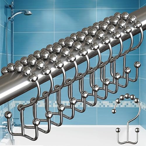 BigFoot Shower Curtain Hooks, Stainless Steel, Rust Resistant, Easy Installation & Smooth Glide, Fits Standard Shower Rods, 2 Hook Rings Hold Liners & Curtains, 12 Pieces, Nickel Color