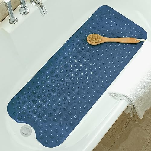Bathtub Mats for Shower Tub Non-Slip Bath Mat 39 x 16 Inch Extra Long Shower Mat, Bath Tub Mat for Bathroom with Machine Washable, BPA Free for Kids (Clear Hot Pink)