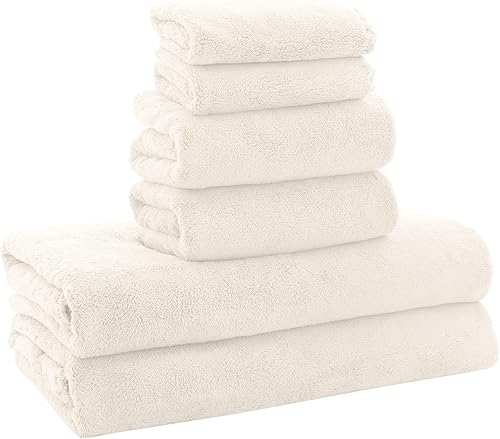 MOONQUEEN Ultra Soft Towel Set - Quick Drying - 2 Bath Towels 2 Hand Towels 2 Washcloths - Microfiber Coral Velvet Highly Absorbent Towel for Fitness, Bathroom, Sports, Yoga, Travel (Pink, 6 Pcs)