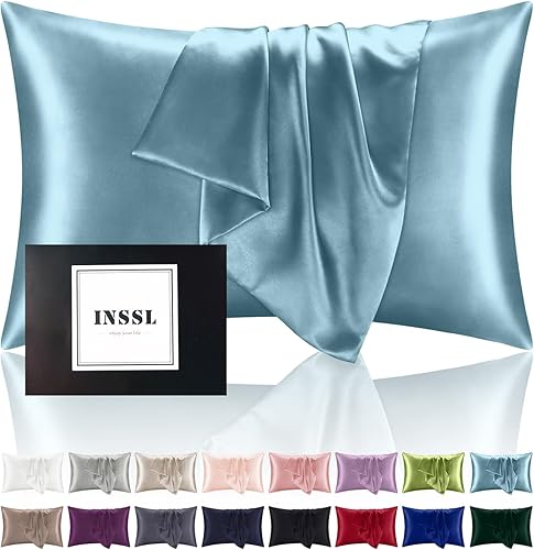 INSSL Silk Pillowcase for Women, Mulberry Silk Pillowcase for Hair and Skin and Stay Comfortable and Breathable During Sleep Silk Pillow Cases (Blue Gray,Standard)