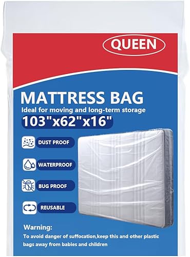 Plastic Mattress Bag for Moving Storage, Mattress Protector Cover ,Mattress Bag for Disposal (Queen)