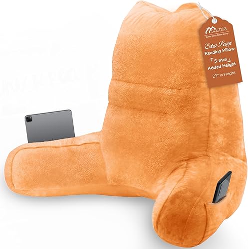 Sasttie Reading Pillow for Bed - 23 Inch, Back Pillow for Bed Sitting Up, Back-Rest Support Cushion with Side Pockets and Arms, Dorm Essentials, Oeko-Tex Certified, Dark Grey