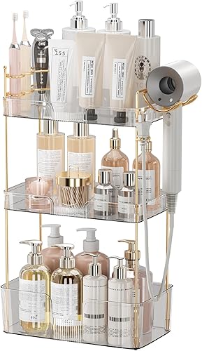 3 Tier Bathroom Organizer Countertop Makeup Perfume Tray Skincare Organizer for Bathroom Dresser Vanity (Grey)