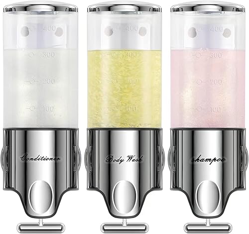 Shampoo and Conditioner Dispenser,Dispensers for The Shower,Shower Soap Dispenser 3 Chamber No Drill,Shampoo Conditioner Body Wash Dispenser Wall Mount for Bathroom(Triple x 17.6 oz,Clear)