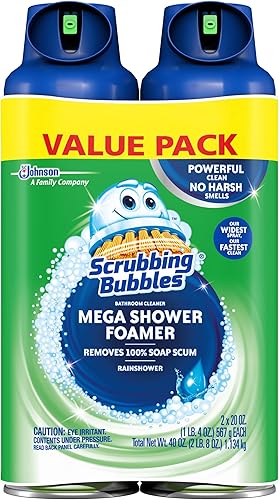 Scrubbing Bubbles Mega Bathroom and Shower Foamer Aerosol, Rainshower Scent, 20oz (Pack of 2)