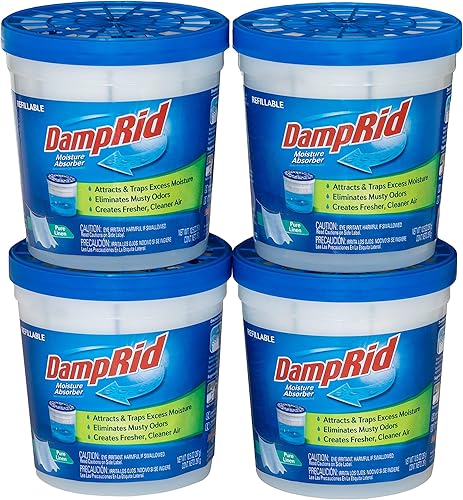 DampRid Pure Linen Refillable Absorber-10.5oz Traps Moisture for Fresher, Cleaner Air, 10.5oz cups - 4 pack, Blue, 4 Count
