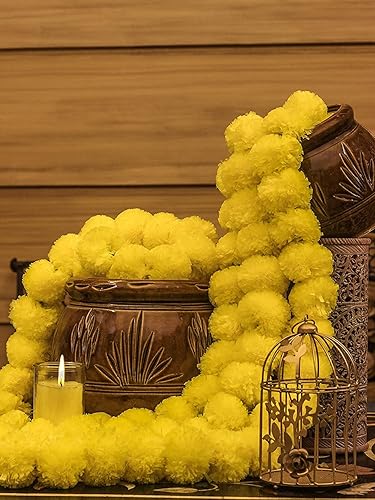 10 PC - 5 feet Marigold Garland |Indian/American Wedding Party Mantle Decoration, Faux Garlands Wedding Garland, Diwali Decoration, Spring Bush Floral! (Yellow & Dark Orange)(Lemon Yellow)