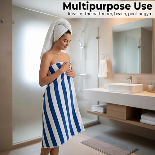100% Cotton Beach Towels Pack of 6 – Soft, Absorbent & Quick Dry Cabana Striped Pool Towels for Adults – Large, Lightweight, and Durable Cotton Towels for Beach