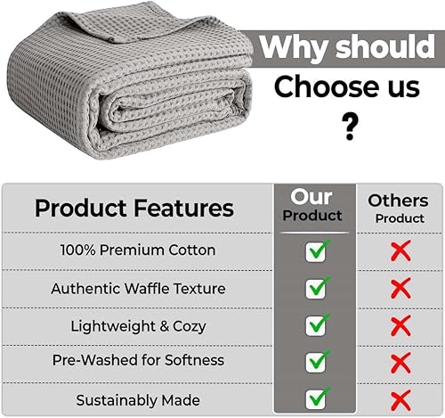 Comment on "100% Cotton Blankets Queen Size for Bed - Waffle Weave Blankets for Summer, Lightweight and Breathable Soft Woven Blanket for Spring, (Dark Grey, Queen (90" x 90"))(Light Grey,King (90" x 108"))"