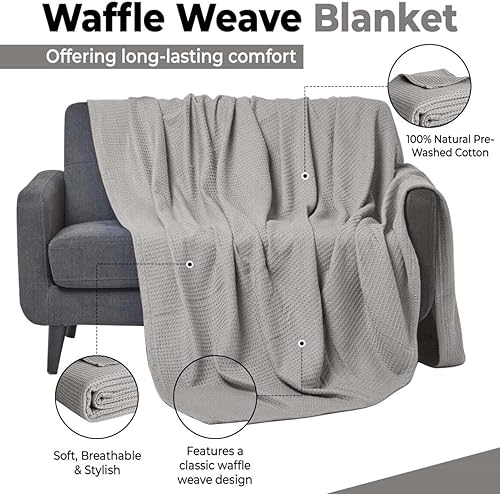 Indulge in Natural Pre-Washed Cotton Waffle Blankets! Crafted from 100% cotton. Enjoy exceptional softness that only gets better with each wash. Stay cozy for years with these lightweight summer blankets. Ideal for queen beds or as cotton throws for couch.