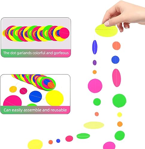 120feet UV Round Dot Paper Neon Garland Neon Streamers Decorations UV Reactive Black Light Party Favors Glow in The Dark Party Supplies for Wedding Birthday Garlands(7color Dot)