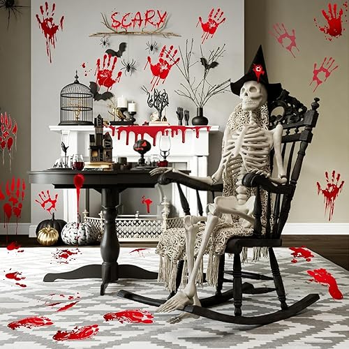 Comment on "136Pcs Halloween Decorations Indoor, Scary Bloody Handprints Wall Decals Pumpkin Eyeballs Skull Window Stickers with Tattoos for Home Bedroom Floor Bathroom Door Decor (Red Handprints Footprints)"