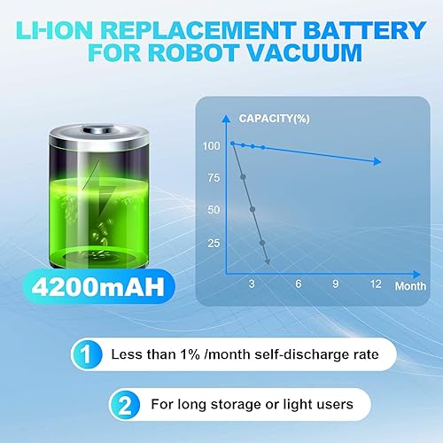 Premium Battery - This vacuum robot battery features high-quality rechargeable cells and an adaptive chip that stabilizes current and voltage, ensuring no adverse effects on the robot. It retains over 95% of its capacity after 500 cycles of use
