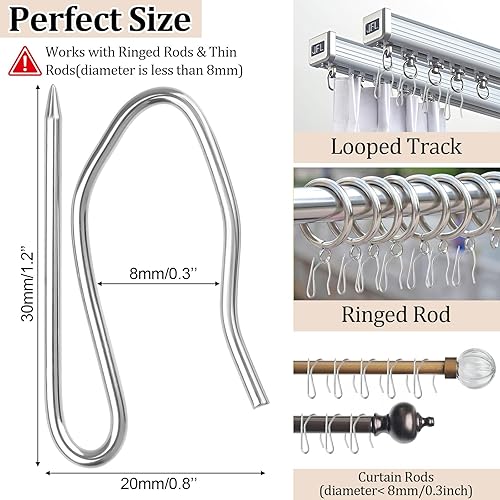Universal Fit: Measuring 1.2 x 0.8 inch, these hooks apply on curtains with heading tape, ringed rods, and looped tracks, perfect for windows, doors, showers, or RVs