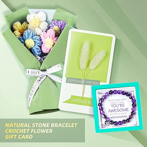 NATURAL STONE BRACELET & CROCHET FLOWER: The bracelet is made of 8 mm natural agate stone, which can bring her luck, wisdom and strength. The elastic rope fits most wrists. A bouquet of delicate handmade crochet flower create a warm moment for her and leave her with an impressive holiday memory.