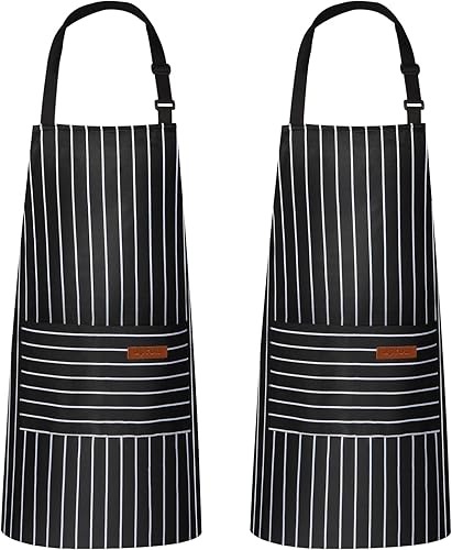 2 Pack Kitchen Aprons, Apron for Cooking with 2 Pockets, Unisex Adjustable Neck Strap Chef Aprons for Men Women(Black & Black)