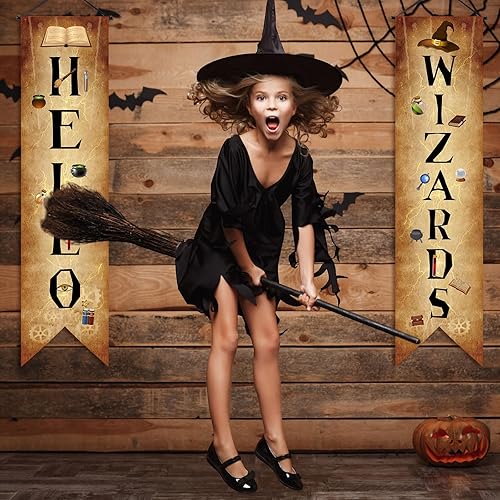 Wizard Banner Decoration Set: wizard banners are measured about 47.2 x 11.8 inches, with large letters and vivid colors, easily stands out to catch everyone's eye, they also fit for magical wizard party decorations as a welcoming front door sign or party decoration