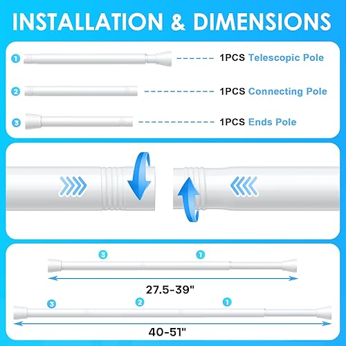 ✔️【Multi Application】- SISELBA spring tension curtain rods are an ideal choice for small shower stall curtain rod, wardrobe shoe racks, closet tension rod, bookcase rods, balcony curtain rods, kitchen window layer curtains and sideboard rods.