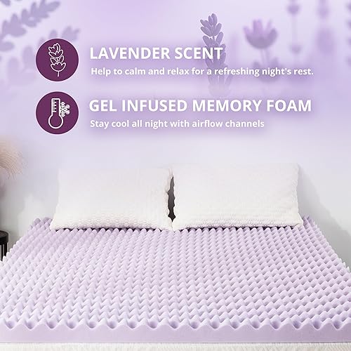 Lavender Scent: Tiny channels on the surface of the mattress topper, which help promote airflow, and Lavender Scent Memory Foam Layer to maintain a calming and relaxing sleeping environment.