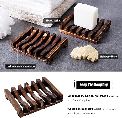 【Keep The Soap Hard】Hollowed out wooden strips with slanted design and heightened base, which provides a 360 ventilation and self-draining advantage for bar soap and effectively prevents the soap from softening, Keep soap dry quickly to prevent wastage.