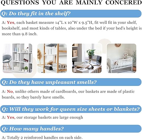 【MULTI-PURPOSE】 Our 4 pcs closet storage bins are home essentials to save storage space and keep everything organized. Large enough baskets for organizing clothes, kid’s toys, nursery room items, extra linens, laundry, towels, sheets, pantry and more.
