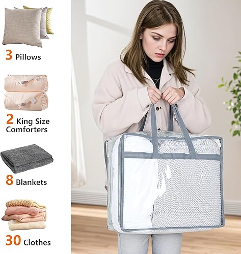 Clear & Visible Design : The blanket storage is clear and visible design, which make it easier to find what you want inside without opening the storage bags one by one. Large capacity is designed for pillows and queen size beddings, or comforters.