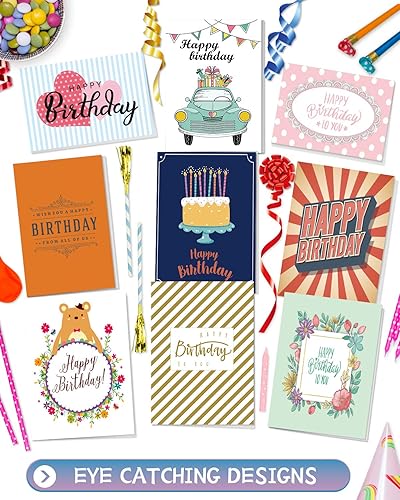 60 Unique Birthday Cards - Assorted Happy Birthday Cards, 5 x 7 inches, With Messages, Envelopes & Stickers in Bulk Boxed Set