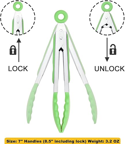 Small Silicone Tongs 7-Inch Mini Serving Tongs, Set of 3 (Black Gray White)(Green,7-Inch)
