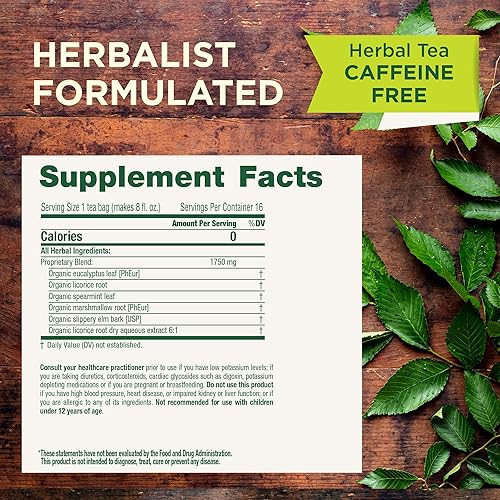 Comment on "Traditional Medicinals Organic, Throat Coat Tea, Eucalyptus & Slippery Elm - Supports Respiratory and Throat Health - Kosher, Non-GMO, Caffeine-Free, Compostable - 16 Tea Bags(16 Count (Pack of 1))"