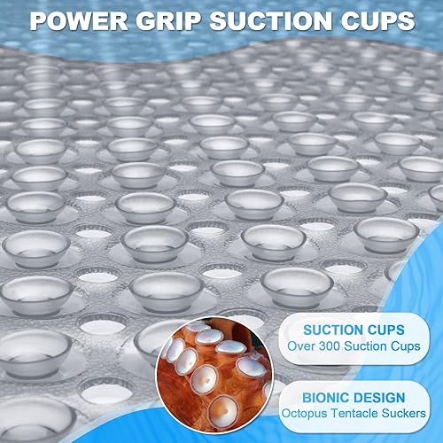 STRONG GRIP: Linoows premium tub and shower mat upgrade comes with 300 high-strength and flexible suction cups, 30% more suction cups than other ordinary tub mats on the market, and stronger suction to help keep it in place on a smooth clean surface. Our bath mats are a great choice for the home, gym, spa, and more!