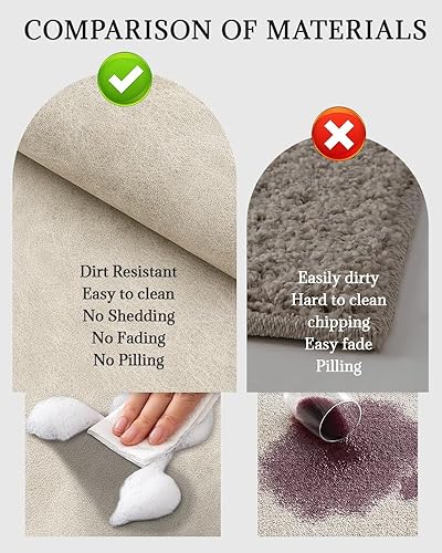 【Dirt-Resistance and Durable】These magic bathroom mats are designed with a Faux suede surface. You will never be bothered by fiber dropping or fuzzy pilling problems like traditional Chenille bathroom floor mats. Therefore, this rubber bath rug is much more durable without difficulties caused by fibers, like shedding, fading, wearing, dirt, or hair-hiding