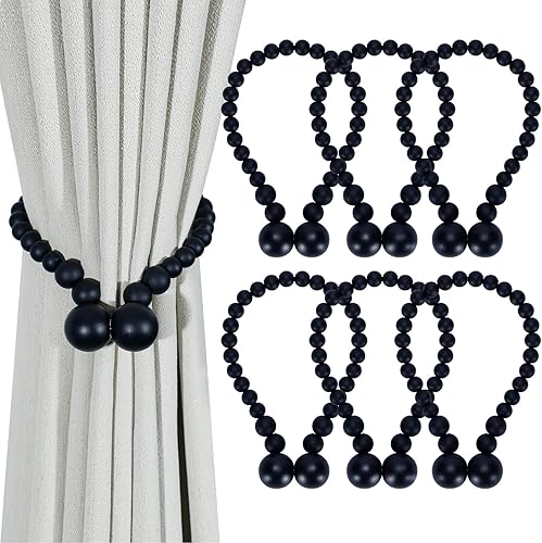 No Drilling, Easy to use: Magnetic curtain holders offer a modern and the most convenient ways to clip your curtains. You do not need to use hooks or drill holes in the wall. Hold your curtains back in seconds. Natural wood beads will create an elegant look for your curtain and add a touch of boho chic vibe