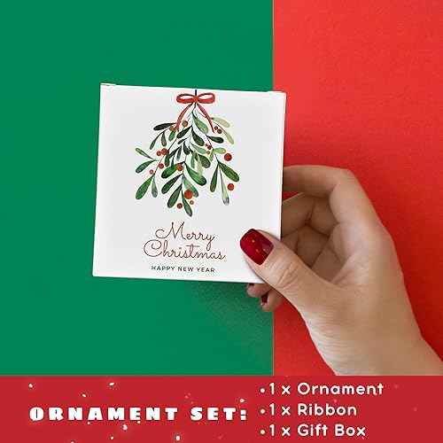 ORNAMENT SET INCLUDES: You will receive 1x One-sided Ornament, 1x Twine Rope Ribbon, and 1x Kraft Gift Box. This twine rope also features two wooden beads and a caro red ribbon. The included instruction sheet will show step-by-step how to tie the rope with your ornament. By following these instructions, you'll able to create a unique and rustic look for your Christmas tree.